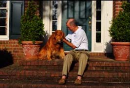 This is me dragging the dog into the picture frame for the business card picture