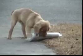 Tanner wrestling with his first paper delivery